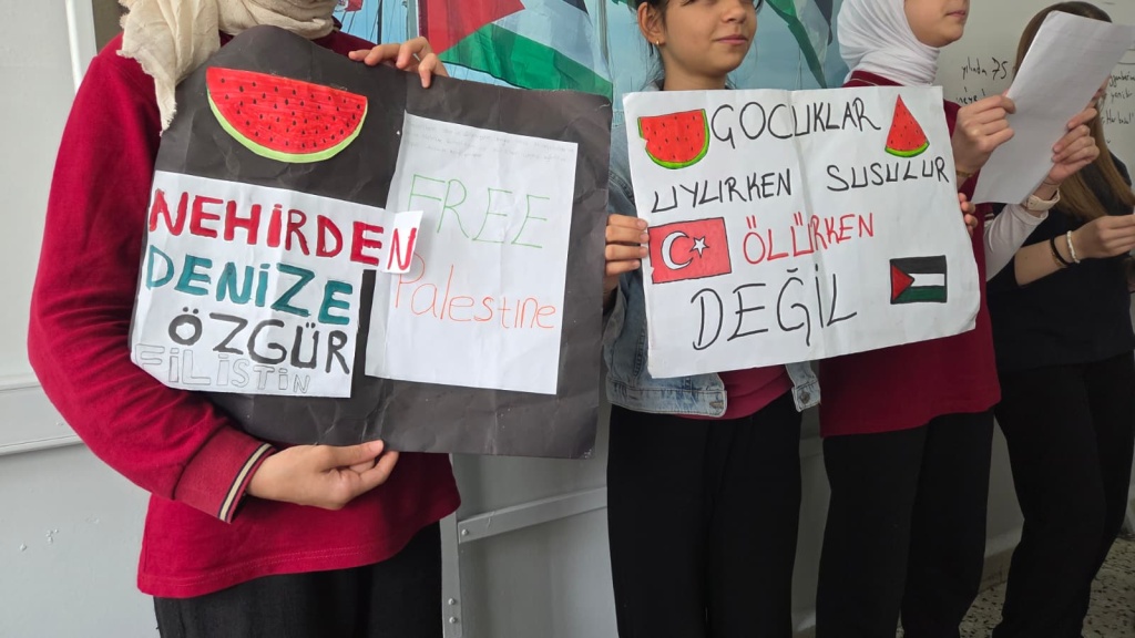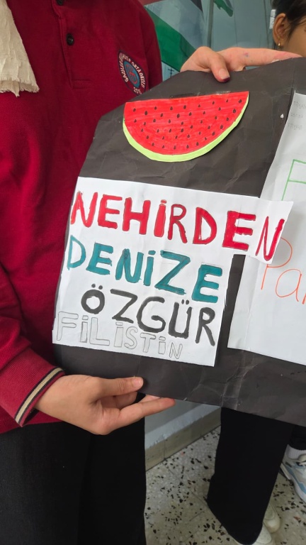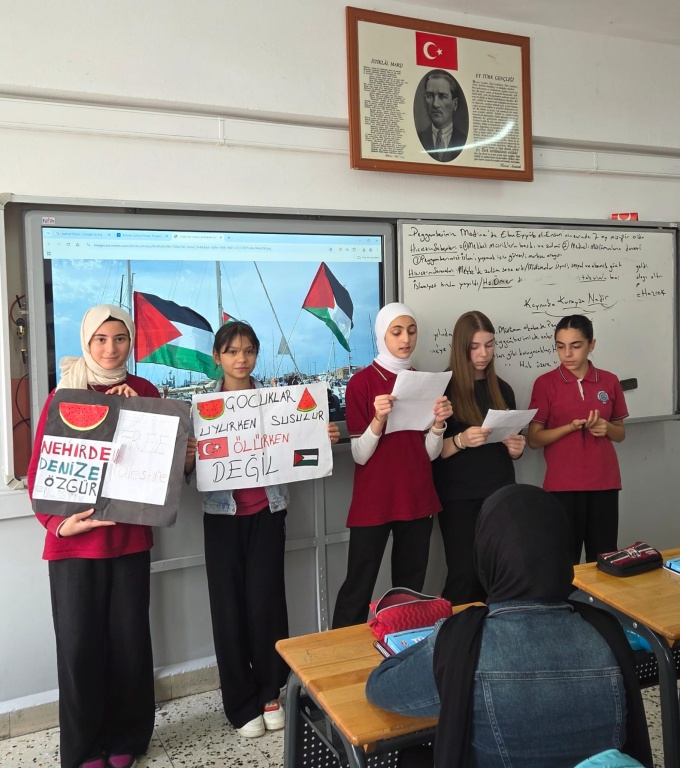 Okulumuz öğrencileri, “Sumud Filosu”nun Gazze’ye ulaştırmaya çalıştığı insani yardımlar konusundaki duyarlılıklarını arkadaşlarıyla paylaştı. Etkinlik kapsamında kendi tasarladıkları bileklikleri birbirlerine hediye ederek dayanışma ve farkındalık mesajı verdi.